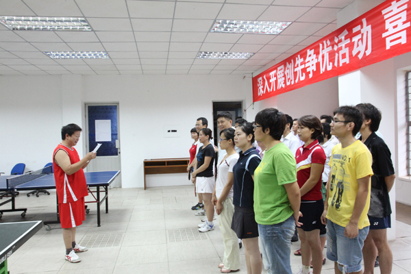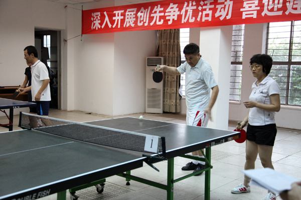 在庆祝建党89周年之际,为深入开展创先争优活动,丰富广大职工的业余生活,增强职工的体质,培养职工团结合作精神,在所领导、所工会的精心组织、妥善安排下,经过两个星期紧锣密鼓的精心筹备,7月1日下午,我所第一届“农信杯”乒乓球友谊赛在所二楼会议室拉开了帷幕。本次比赛共有近40名职工报名参加。他们将通过团体和单项比赛,角逐混合团体、男子单打、女子单打和男女混合双打的一、二、三名。